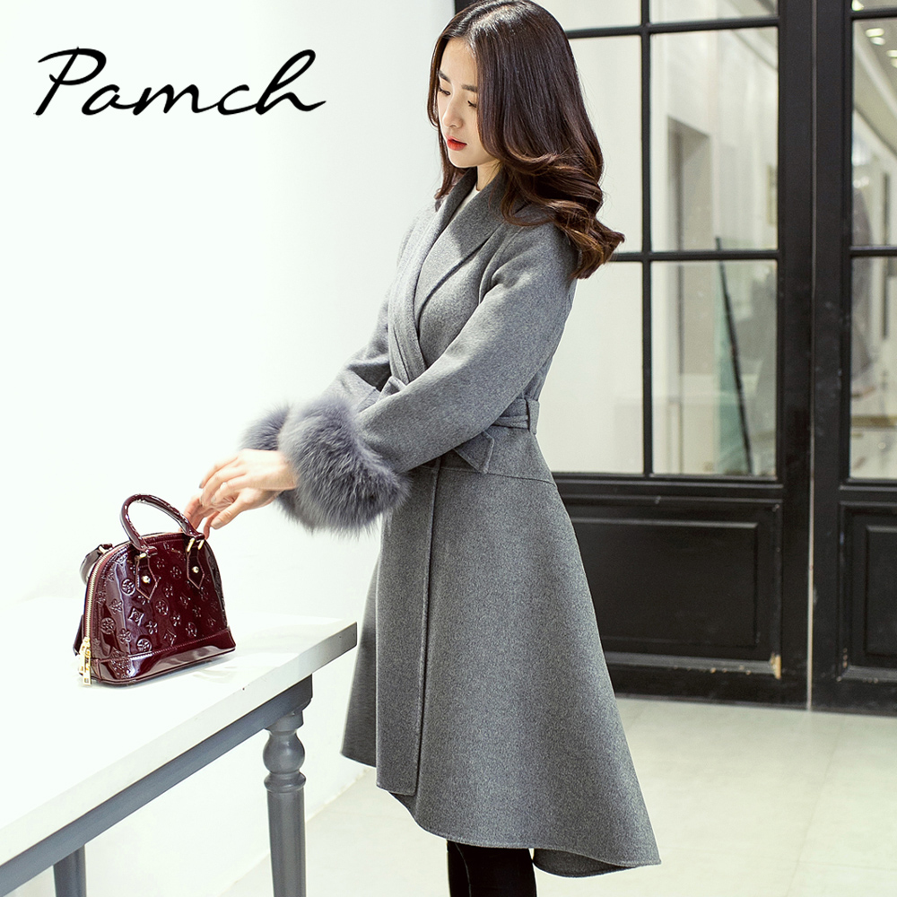 黑色雙面羊絨呢大衣韓版 女裝 秋冬中長款 毛呢外套女 寬松2025年新款