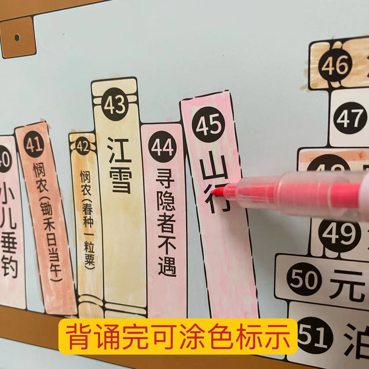 古詩打卡小書架129首自律古詩詞打卡背誦計劃安排涂色表兒童 我由