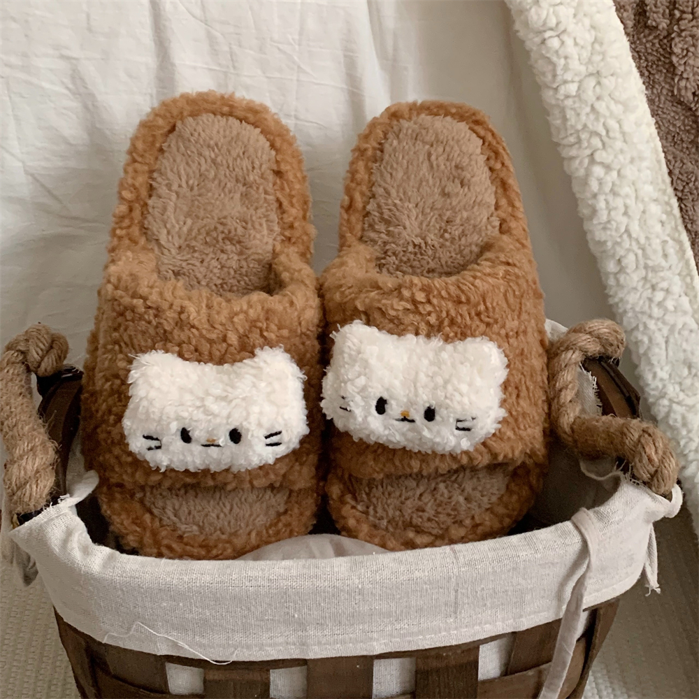 細(xì)細(xì)條 秋冬季 舒適居家可愛一字棉拖鞋 女 立體卡通小貓咪毛毛拖鞋由