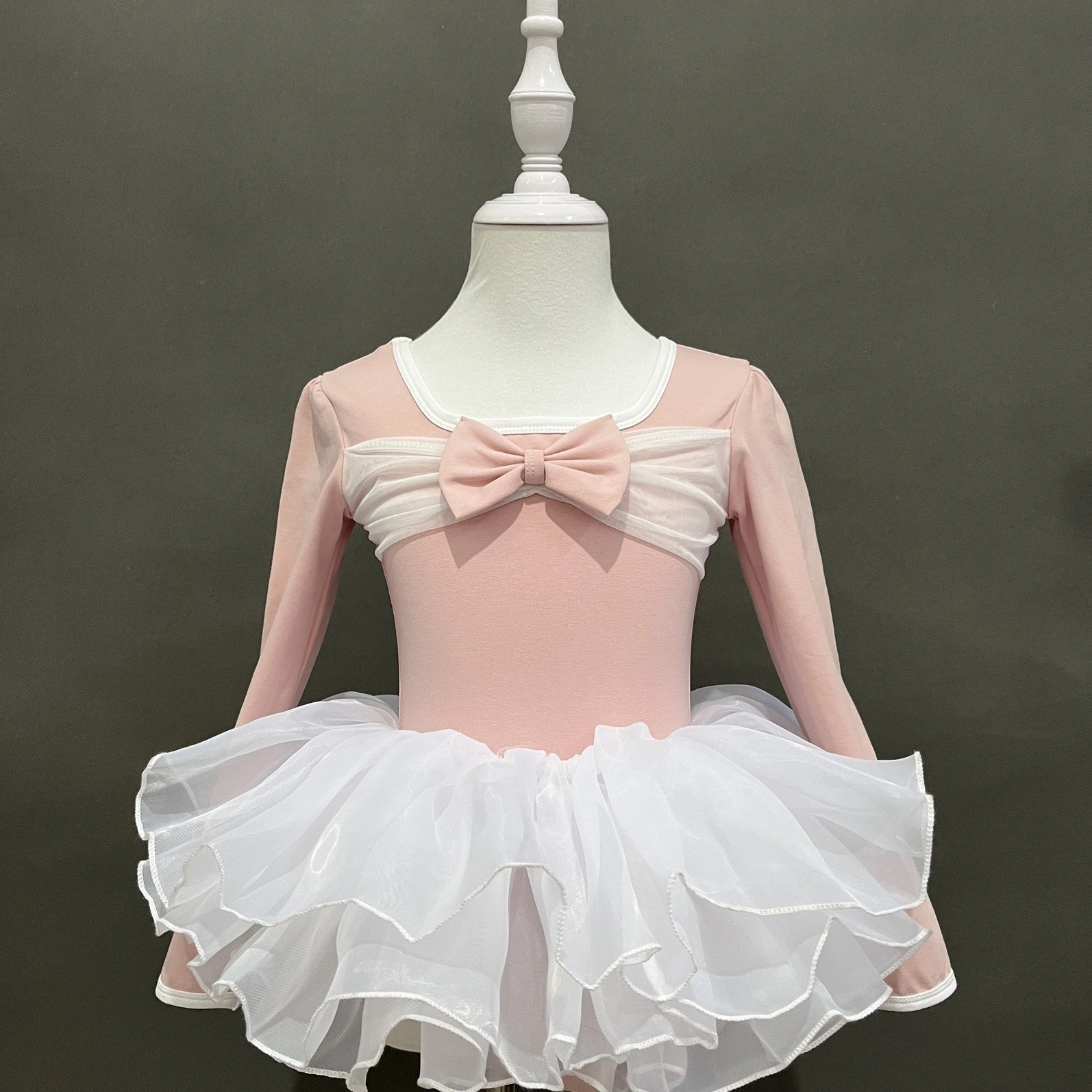 女兒童長袖 演出服連體服中國舞民族舞練功服 春秋可愛蝴蝶結泡泡袖由