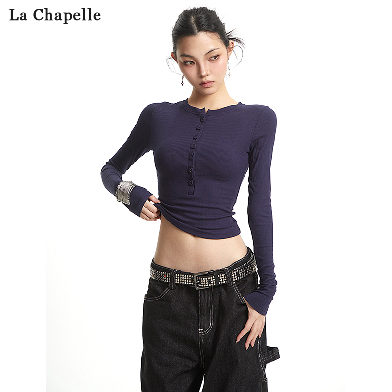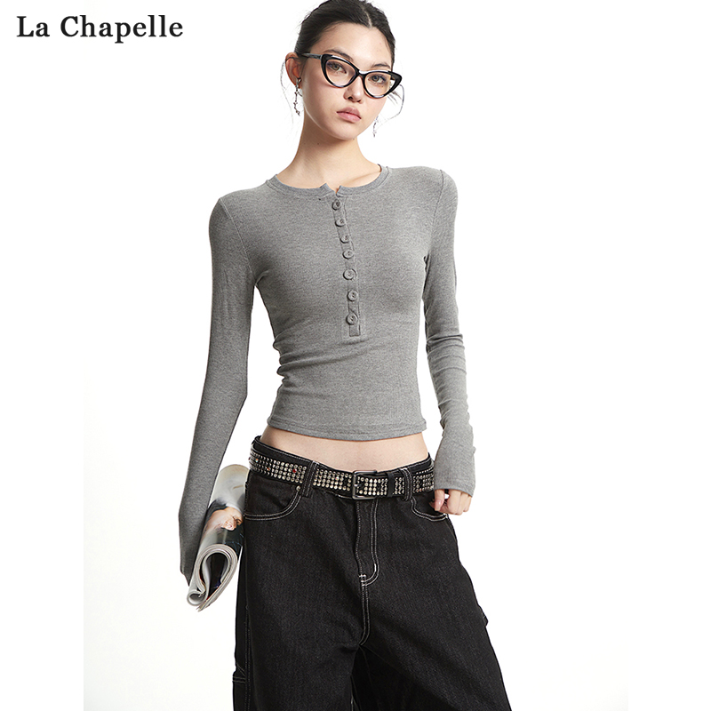 修身 Chapelle 萊賽爾天絲T恤女亨利領(lǐng)長袖 緊身內(nèi)搭上衣 打底衫由