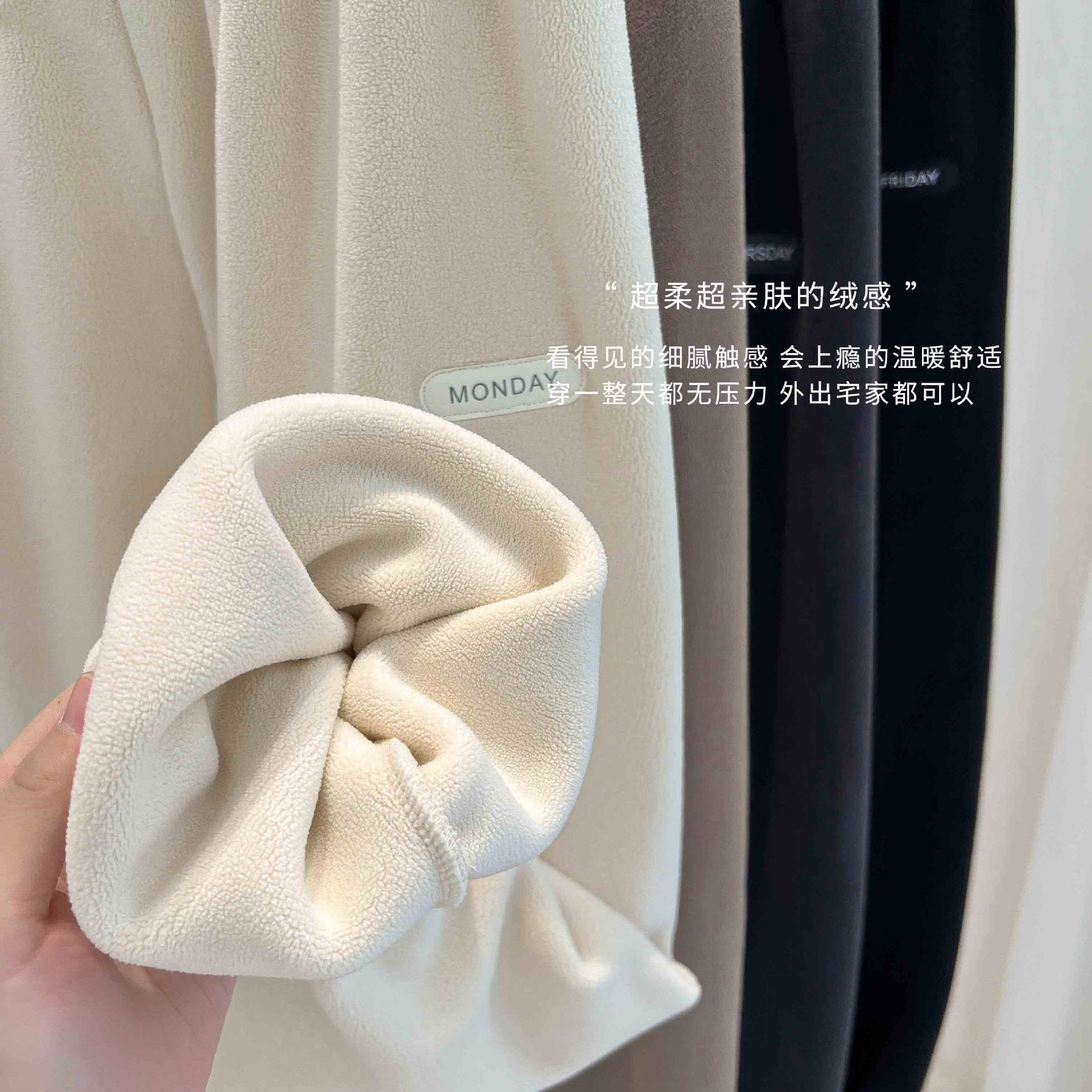 束腳寬松休閑褲 女可外穿保暖九分褲 秋冬加厚雙面搖粒絨居家暖暖褲由