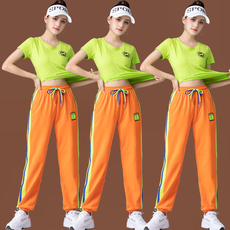 修身 跳舞運動套裝 夏季 練功服女 褲 薄款 健美操鬼步舞工裝 廣場舞舞褲