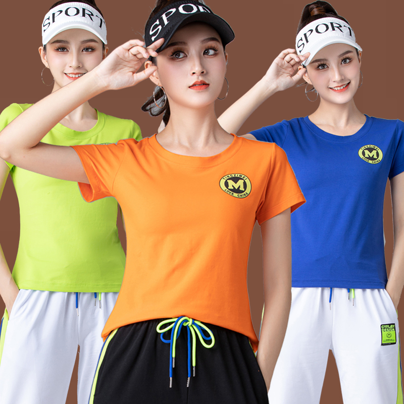 上衣楊麗萍跳舞衣服健身操運動純棉短袖 廣場舞服裝 女夏季 新款 套裝