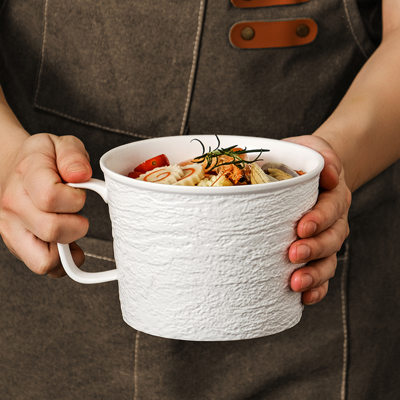 LIFE宿舍泡面碗陶瓷把手碗帶蓋大容量家用高顏值廣口大杯子 CiHui由