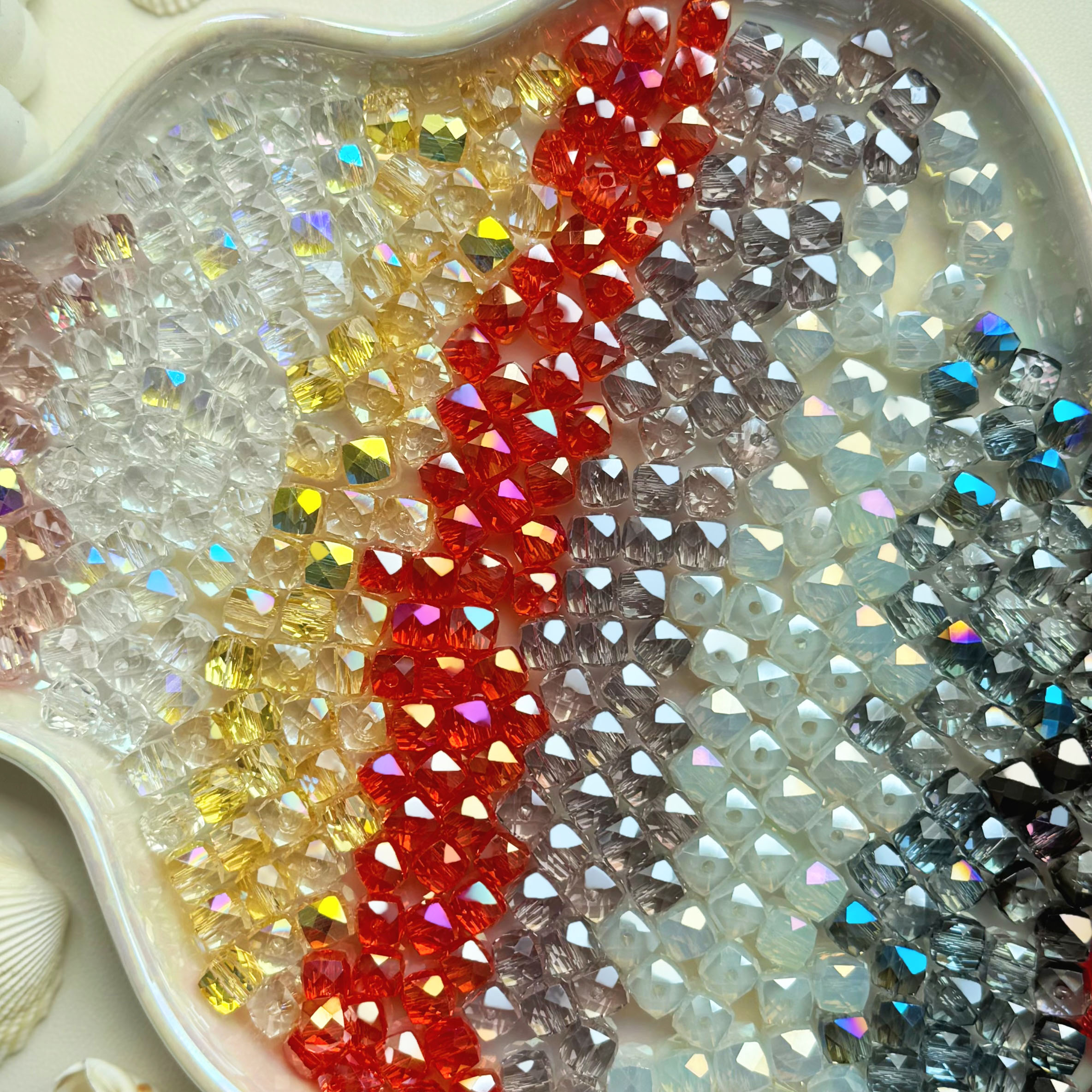 包鏈珠 6MM切面方桶珠子水晶玻璃珠高透超閃串珠手工diy服飾配件鞋由