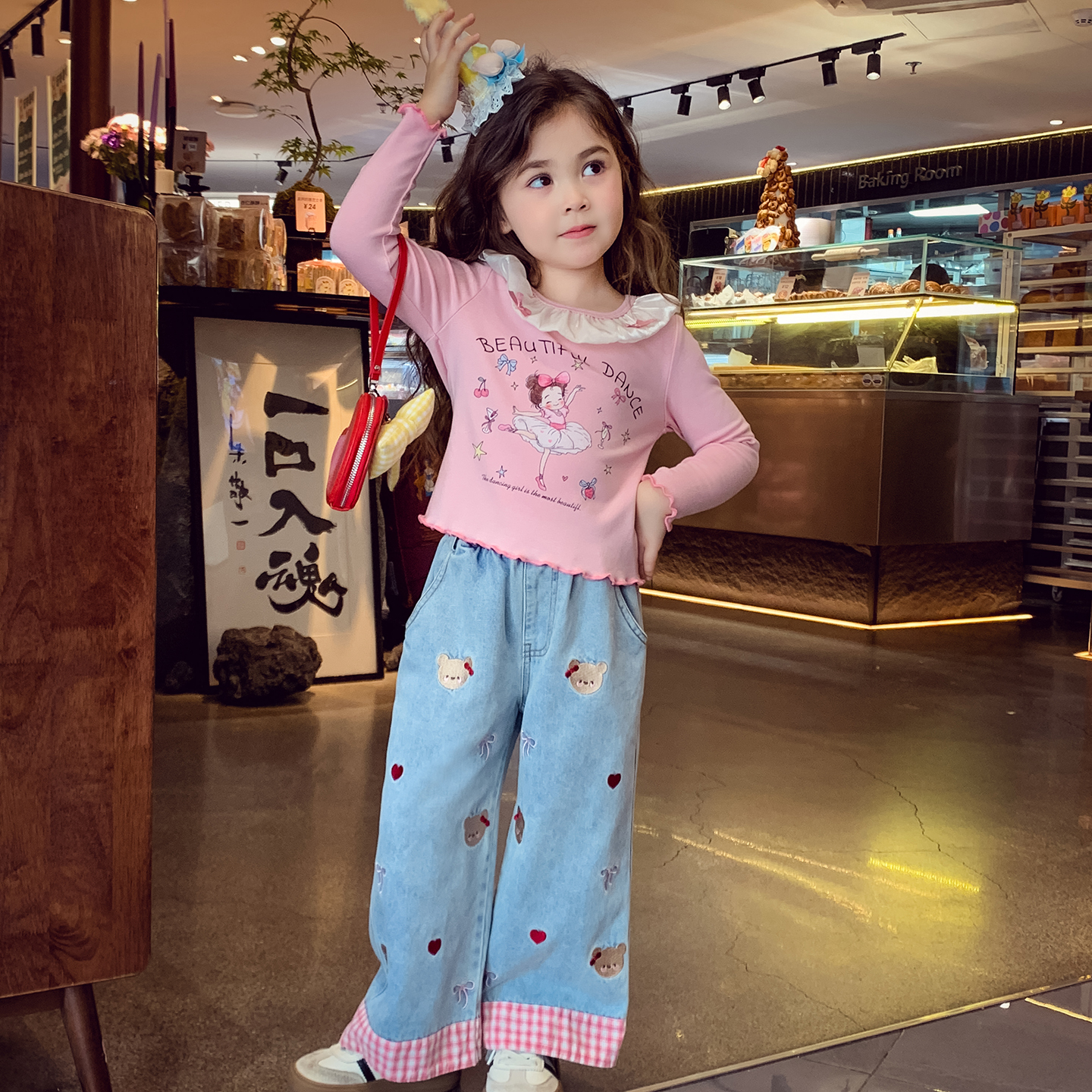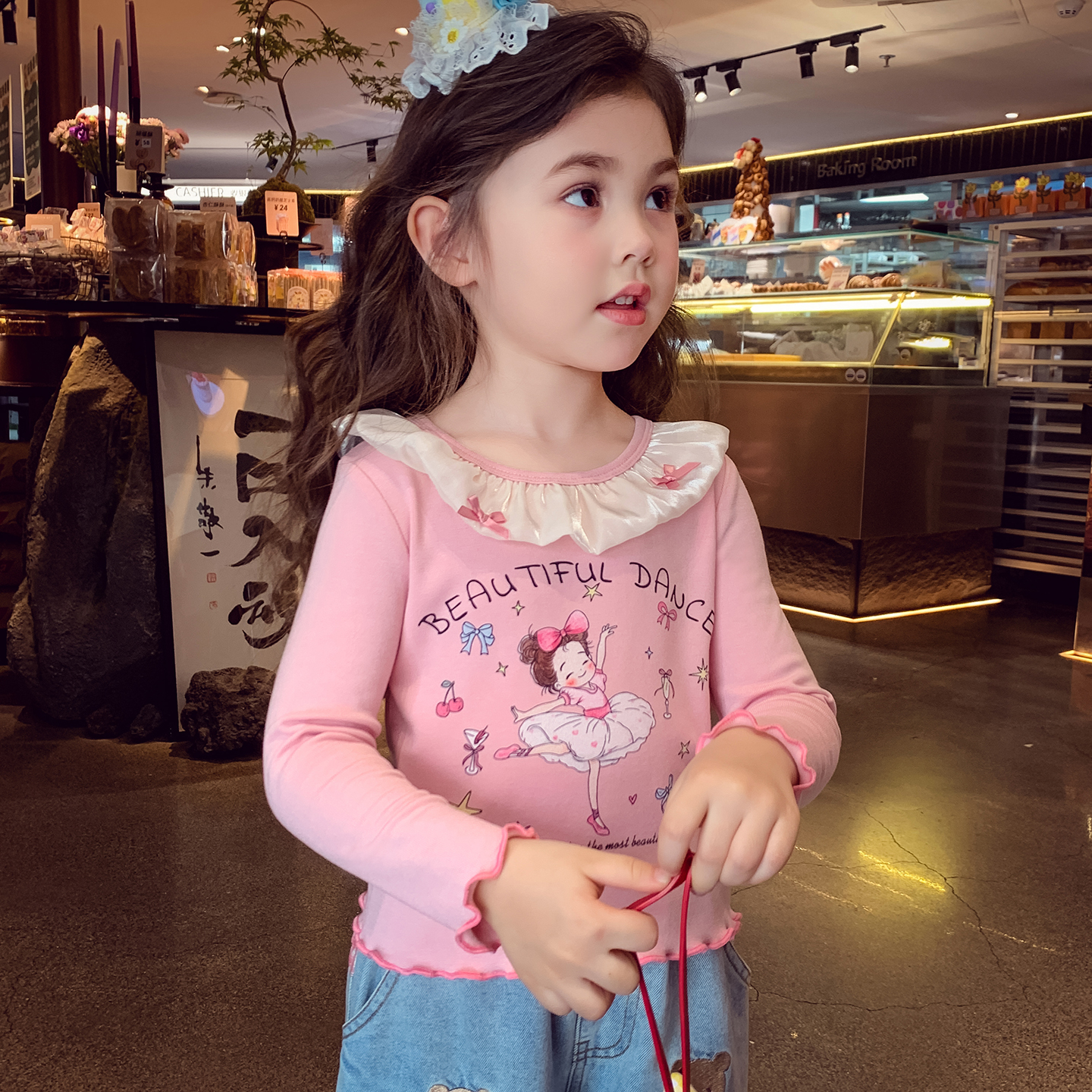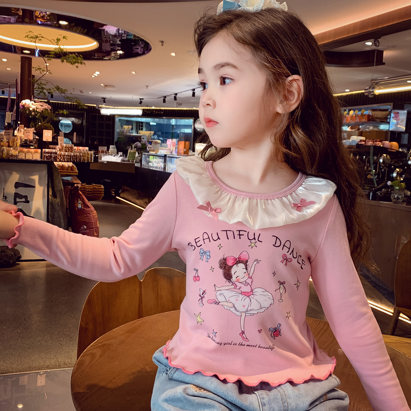 女童長袖 小女孩芭蕾風上衣洋氣兒童卡通印花打底 T恤秋冬2025新款由