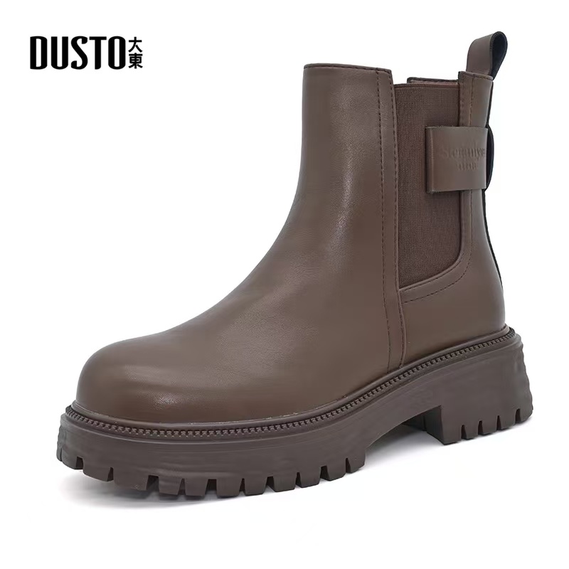 大東女鞋 新款 時(shí)尚 休閑中跟粗跟圓頭舒適厚底短靴 煙筒靴2024冬季由