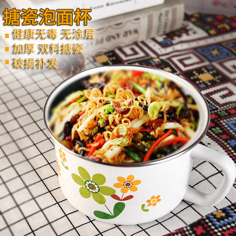 加厚搪瓷學生飯盒快餐杯泡面碗吃飯碗杯泡面杯麻辣燙碗帶蓋碗奶杯由