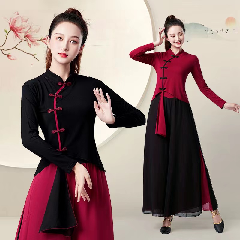 網(wǎng)紗闊腿褲 中國舞演出服 旗袍上衣古典舞身韻練功服套裝 廣場舞服裝