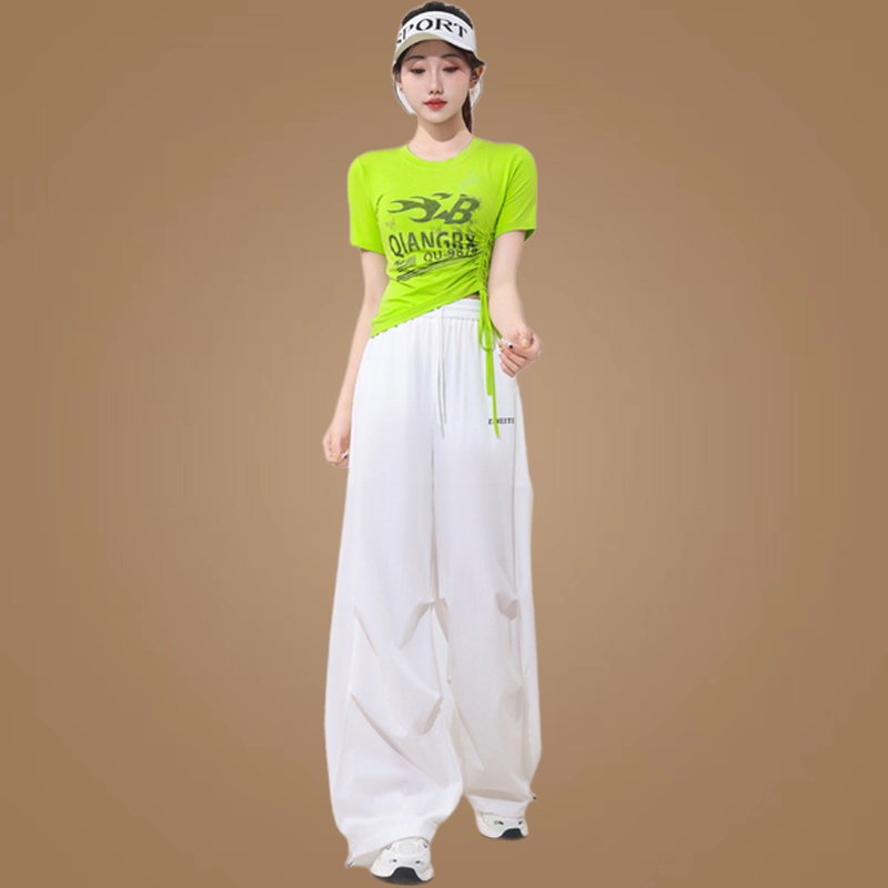 速干褲 夏季 子 廣場舞薄款 曳步舞奧代爾棉抽繩短袖 時尚 氧氣運動套裝由