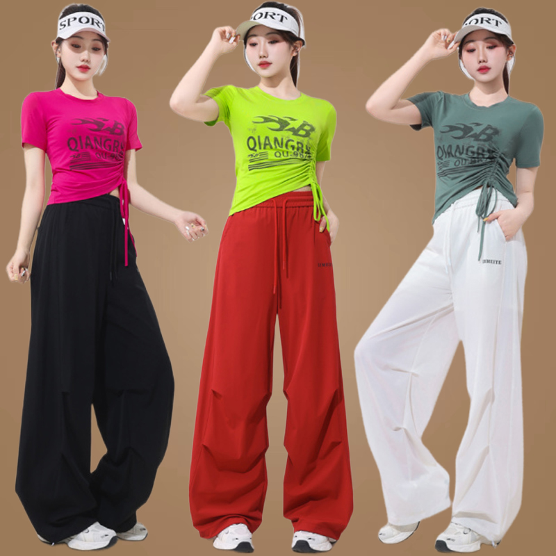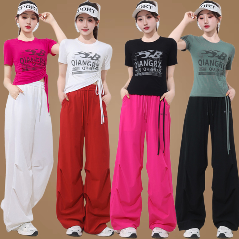 修身 跳舞運動套裝 夏季 練功服女 褲 薄款 健美操鬼步舞工裝 廣場舞舞褲