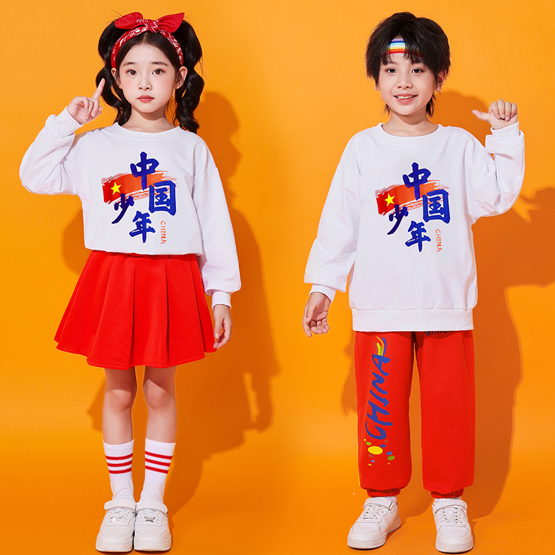 兒童愛國演出服幼兒園舞蹈班服小學生啦啦隊拉拉操運動會表演服裝由