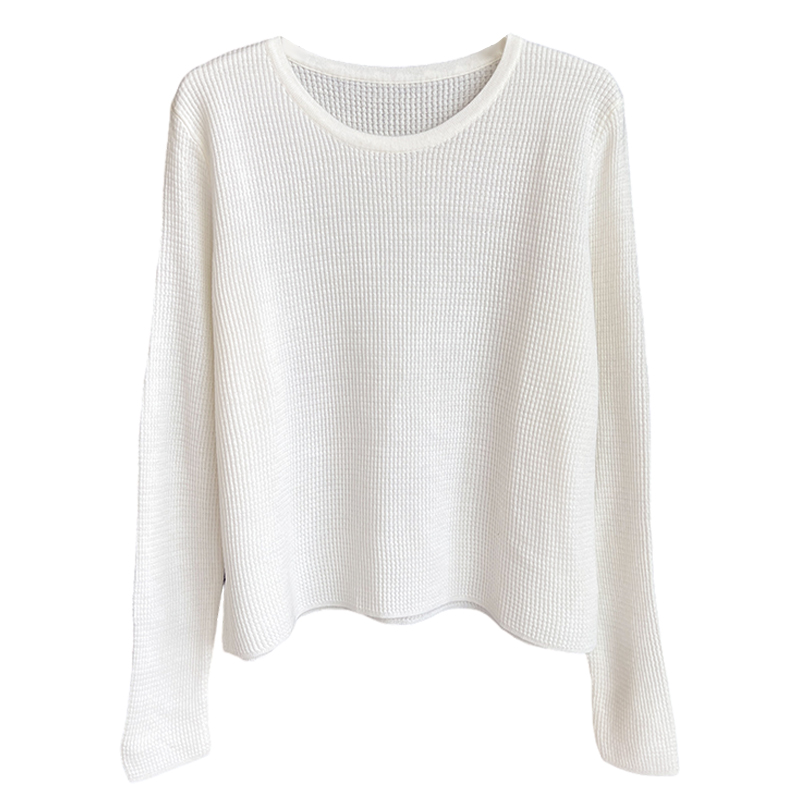 2025新款 純色慵懶風寬松顯瘦內搭華夫格上衣 t恤女春秋季 杏色長袖由