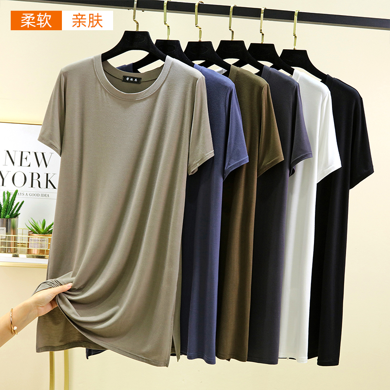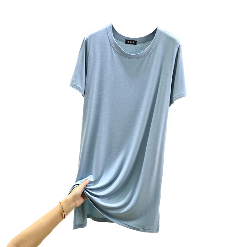 莫代爾圓領短袖 居家中長款 上衣寬松大碼 睡衣休閑可外穿 長T女夏季由