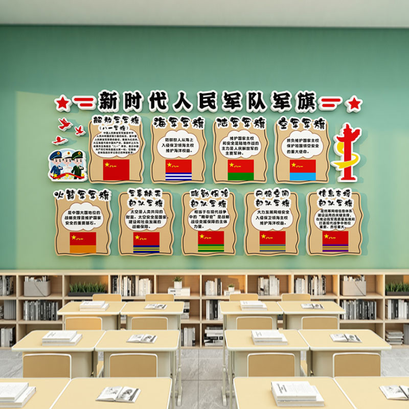 飾文化墻貼隊旗國之重器樓道走廊成品墻三軍3d立體 班級布置教室裝由