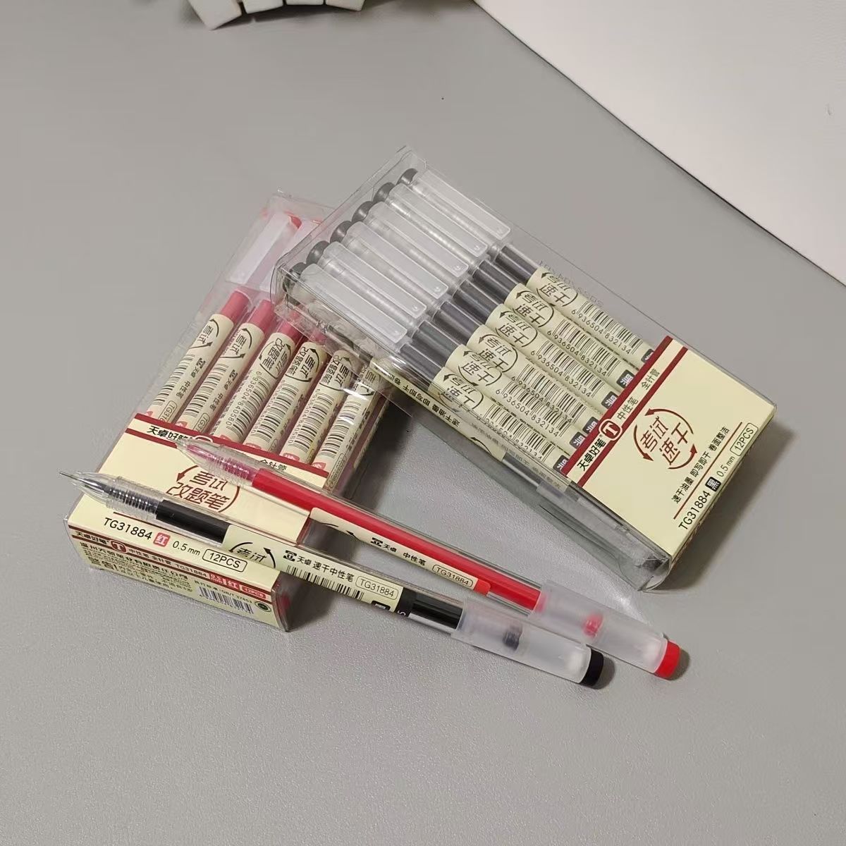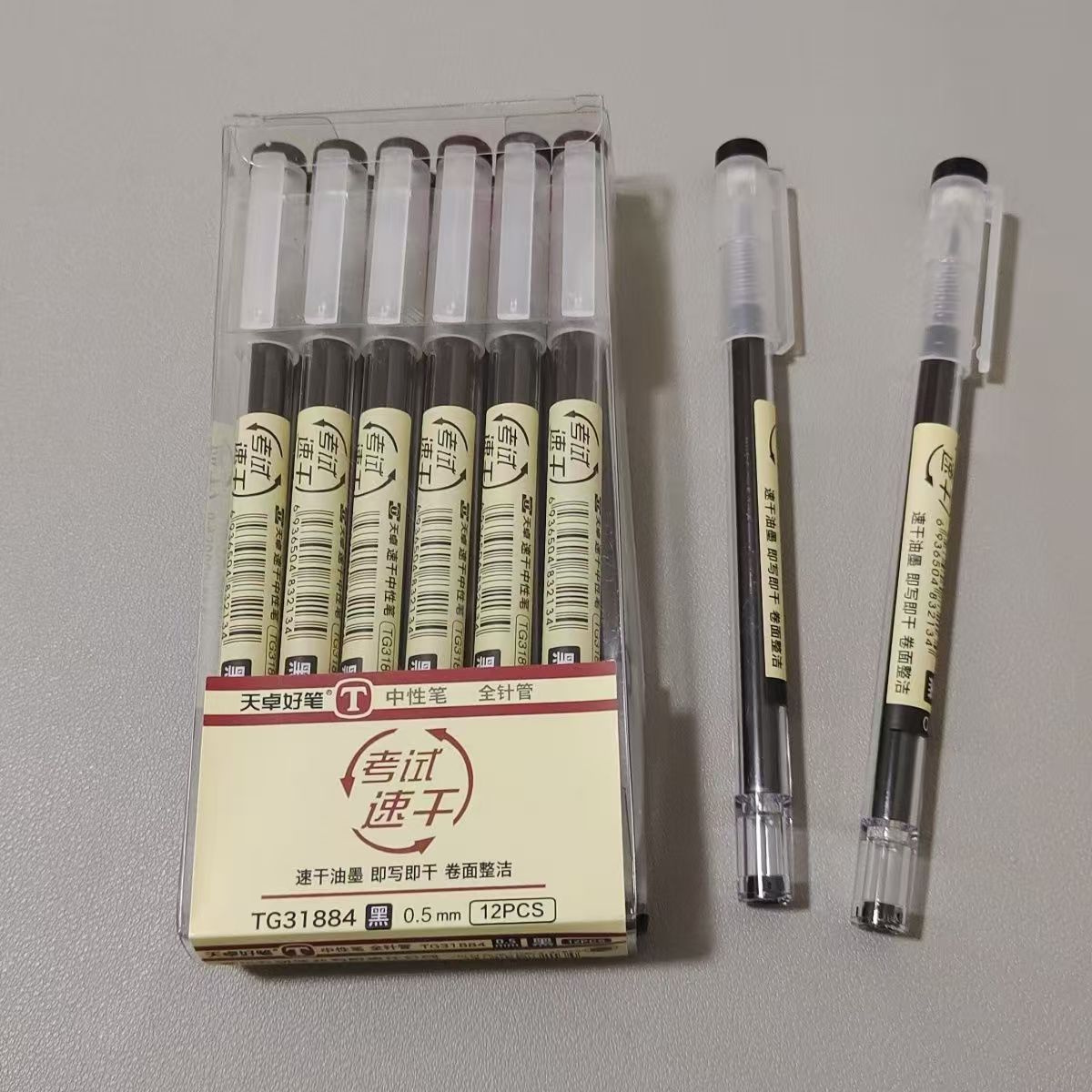 天卓中性速干筆學(xué)生考試專用0.5全針管改題筆大容量辦公簽字碳素由