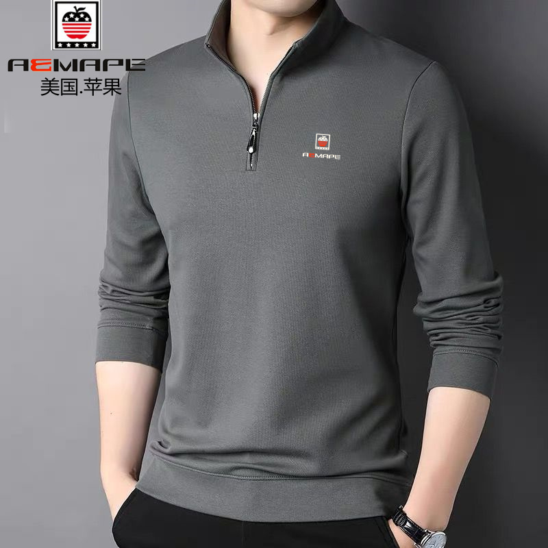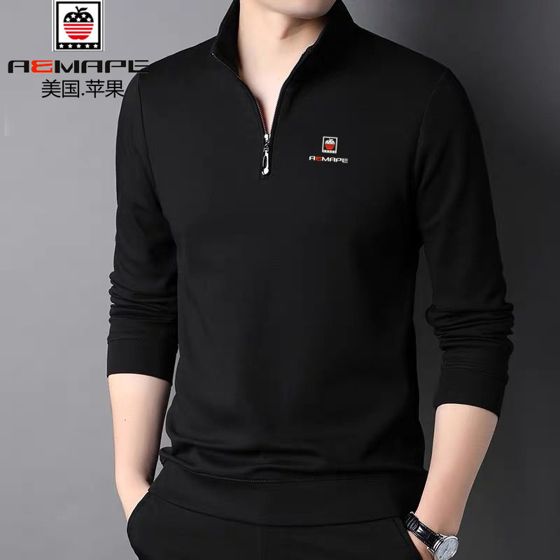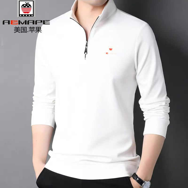美國蘋果春秋新款 拉鏈半高領長袖 棉t恤休閑打底衫 男立領衛衣 男士由