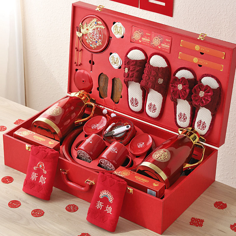 中式 禮盒新人備婚慶物品全套 女方陪嫁洗漱用品大全嫁妝行李箱套裝由